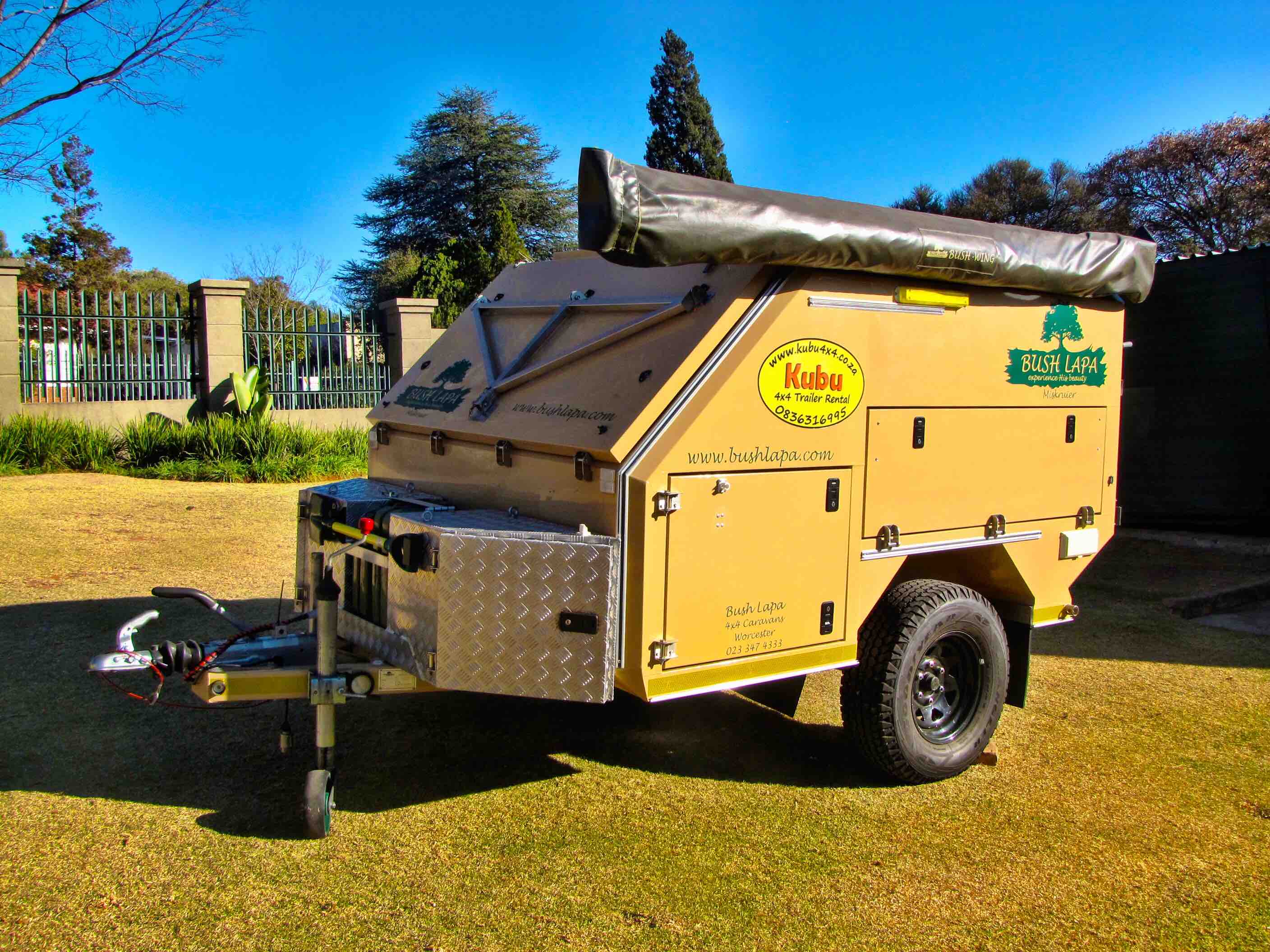 Most campsites in SA have 220V electricity and the trailer is connected to this to charge the batteries. For bush camps batteries can be recharged via Solar Panel(Check our Extras) or from the vehicle through a battery cable with Brad Harrison Plug(To be installed by client).